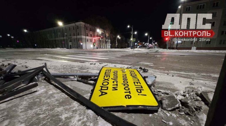 Лежащая на земле табличка «Водитель, пропусти пешехода» и такие же леера на пересечении с улицей Театральной наводят на мысль о том, что так просто это городские власти не оставят, водитель будет обязан возместить ущерб, нанесенный городскому имуществу – в подобных случаях простые ограждения обычно стоят как крыло самолёта.
