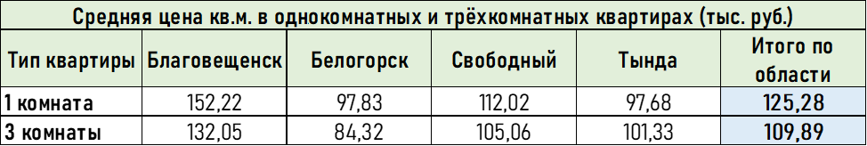 Кстати, наибольшее число объявлений о продаже квартир размещено в Благовещенске, а наименьшее – в Тынде.