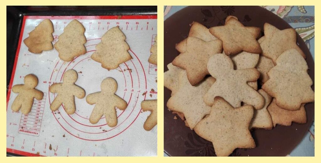 4. Силиконовый коврик или пергамент с вырезанными фигурками переложите на противень и выпекайте в духовке, разогретой до 180 градусов. Печется лакомство всего 5-7 минут, важно вовремя вытащить противень из духовки, иначе печенье получится пересушенным. Вытаскивайте сразу, как только печенюшки начнут подрумяниваться. Приятного чаепития!
