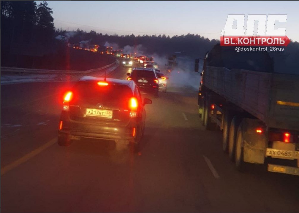 Движение на этом участке трассы серьёзно затруднено, образовалась пробка.