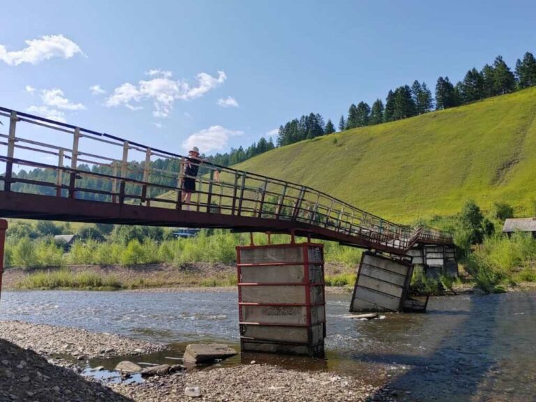 Примерно три года назад после сильного паводка мост получил повреждения. С тех пор он находится в аварийном состоянии. Одна из опор частично завалилась. А сама дорога на улице Заречной покрыта выбоинами и провалами. Без моста жители оказываются буквально отрезанными от цивилизации – длина альтернативной дороги 20 километров.