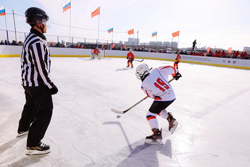 После приветственных слов начался первый матч детских хоккейных команд.