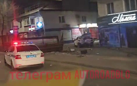 По какой-то непонятной причине следы белой Toyota Mark II с перекрёстка уходят на тротуар – водитель пытался мчаться именно по нему, но остановка помешала. Сотрудники ГИБДД уже отработали на месте. Никто из людей в ДТП не пострадал.