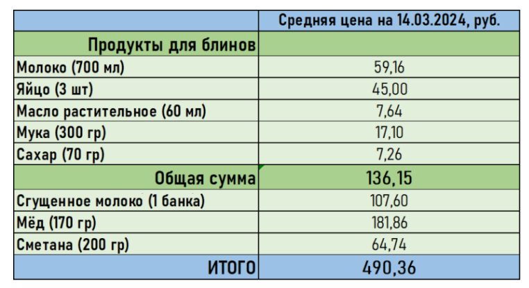 Кроме того, мы отдельно посчитали стоимость сгущённого молока, сметаны и меда – без них чаепитие с блинами сложно представить.