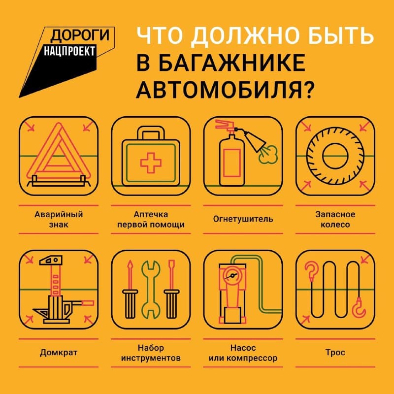 Вот полный список вещей, которые всегда есть в багажнике опытного водителя. По версии «Дорожного патруля» это: