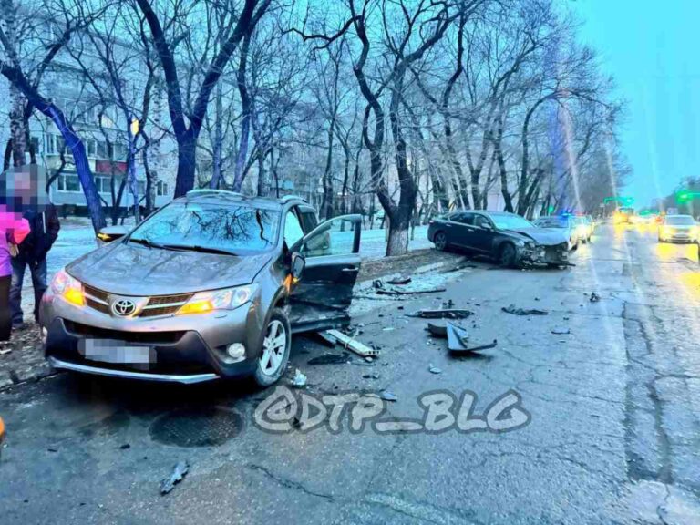 В субботу, 23 марта, в Благовещенске произошло жёсткое ДТП. Кадры с места аварии опубликовали в телеграм-канале dtp_blg.