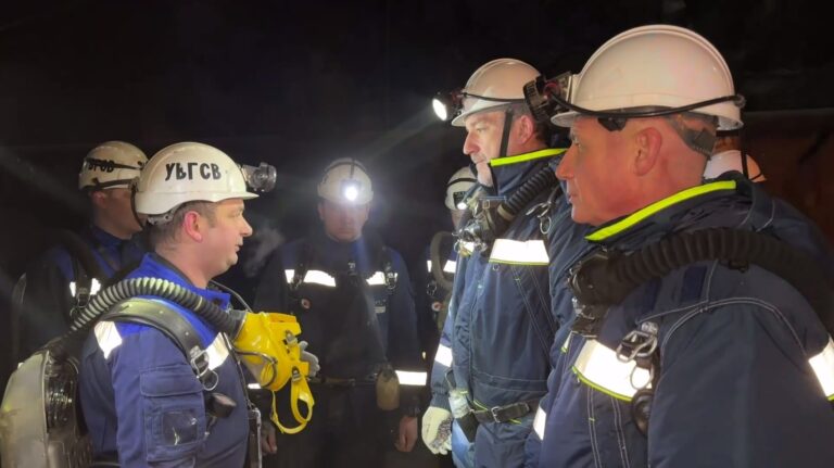 Одновременно продолжается разбор завала в основном ходе шахты. За ночь оттуда вывезли 182 кубических метра грунта. Тяжелая техника сейчас делает дорогу к чаше карьера над обвалившимся рудником. Там будут устанавливать мощный насос для откачки воды.