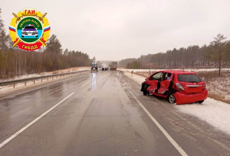 Сотрудники полиции устанавливают обстоятельства ДТП, которое произошло в четверг, 28 марта, в Шимановском округе.