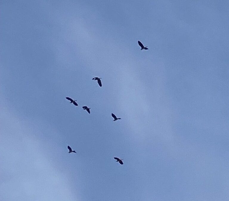 На снимке, размещённом в телеграм-канале ведомства, практически безоблачное, по-весеннему голубое небо и стая из семи птиц.