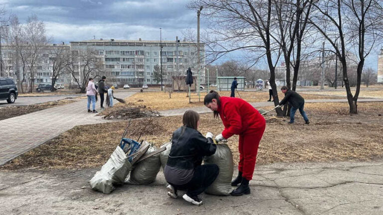 Порядка 30 мешков за 20 минут: в Благовещенске проходит общегородской субботник
