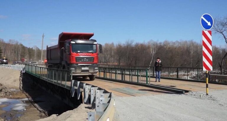 Специалисты демонтировали аварийный мост и обустроили временный мостовой переход через реку Грязнушку. Новый участок пути обследовали и приняли в эксплуатацию. По временному мосту смогут проезжать автомобили весом до 12 тонн.