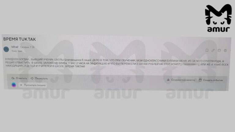 Сообщение о заложенной бомбе пришло в благовещенский лицей № 6. Минёр представился бывшим учеником, сообщил телеграм-канал Amur Mash.