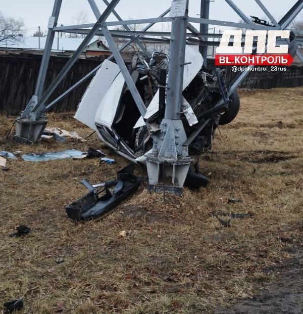 На улице 50 лет Комсомола в Белогорске около пяти утра автомобиль с тремя пассажирами врезался в опору ЛЭП, сообщает телеграм-канал «Белогорск Z ИНФО».