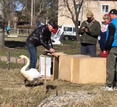 Под аплодисменты местных жителей пернатых переселили на водоём из зимнего укрытия.