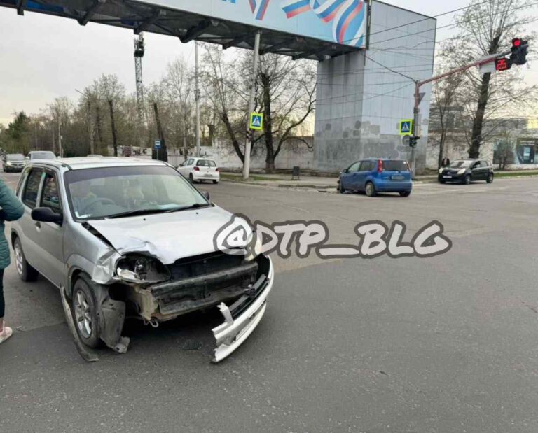 Вечером в пятницу, 3 мая, в центре амурской столицы столкнулись две легковушки. Фотографии с места аварии опубликовали в телеграм-канале dtp_blg.