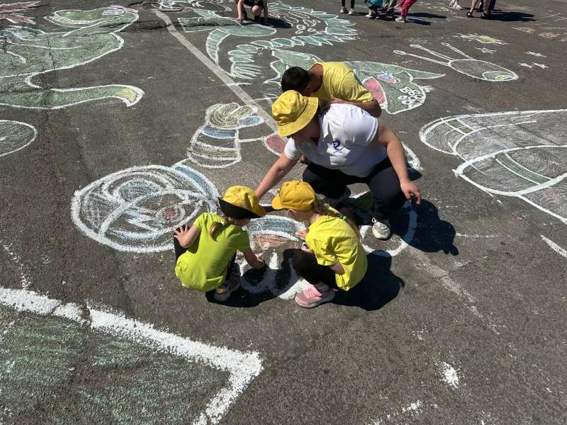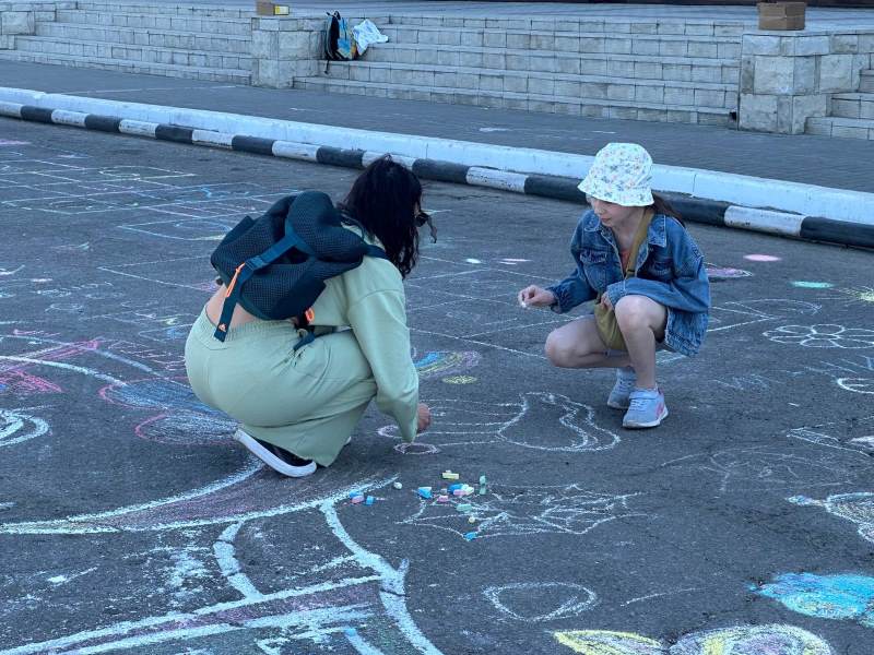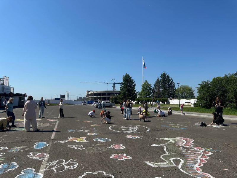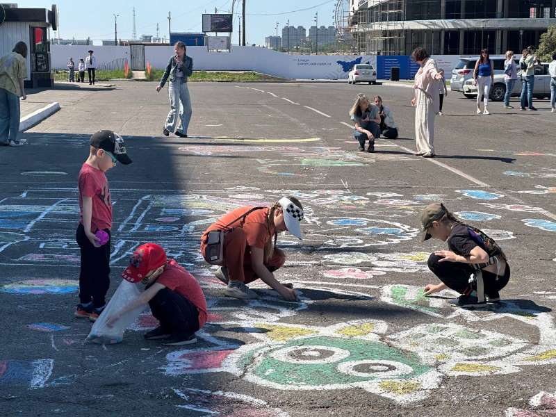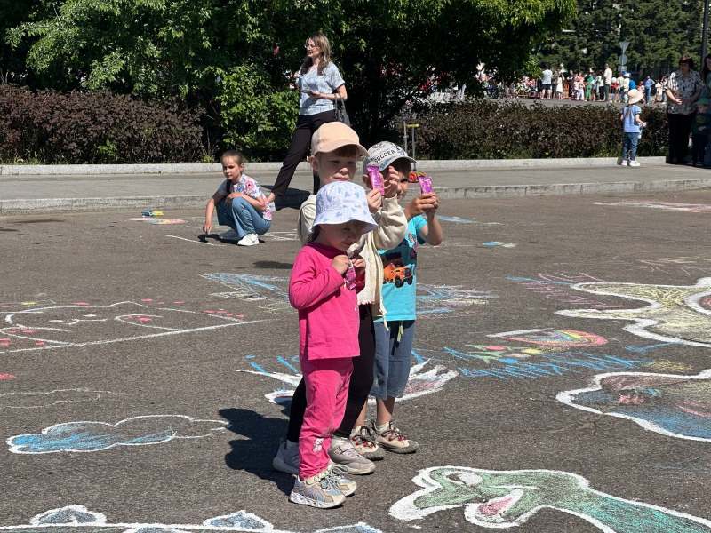 А асфальт на улице Островского вдоль гостиницы «Юбилейная» украсили картины. К их созданию присоединились как маленькие благовещенцы, так и их родители.