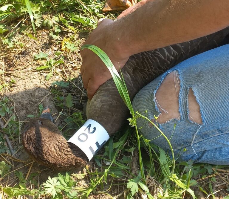 — За зиму мы его подлечили, подкормили и подготовили к выпуску на волю. Для дальнейшей визуальной идентификации на шею было повешено специальное гусиное пластиковое кольцо с номером F20. Всю зиму и весну этот гуменник вынашивал план побега из плена, но оказалось, что в этом не было необходимости. 2 июня на радость соседям по вольерам (журавлям и гусям-сухоносам), которые смотрели на гуменника, как на дикаря, состоялся выпуск его на озеро Капустиха.