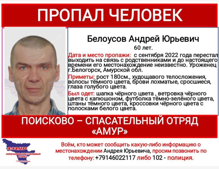 В Приамурье пропал 60-летний Андрей Юрьевич Белоусов. Мужчину ищут второй год. О поисках вновь сообщил поисково-спасательный отряд «Амур».