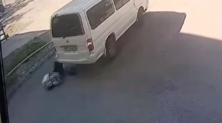 На видеозаписи запечатлено, как водитель микроавтобуса во время парковки на Театральной – Заводской задним ходом сбивает пенсионерку. Автомобиль проезжает прямо по женщине, после водитель выскакивает из салона. Им оказалась молодая девушка.