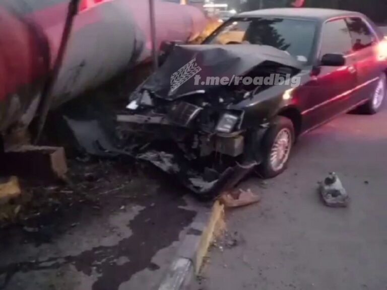 На опубликованных кадрах видно, что чёрная Toyota Crown получила серьезные механические повреждения: вся передняя часть авто буквально вмята. Судя по фото с места аварии, на ликвидации последствий ДТП работала реанимация. По сообщению очевидцев, водитель был пьян.