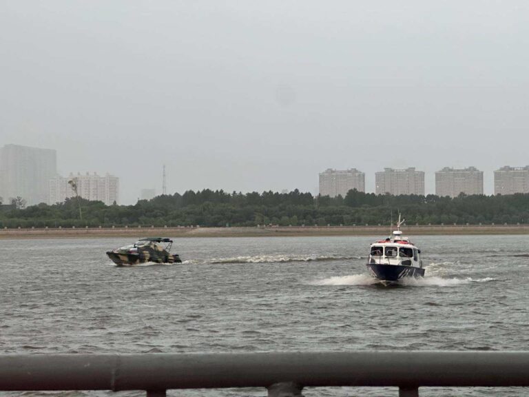 Эстафета добралась до столицы Приамурья прямиком из Забайкальского края. Даже ливень, обрушившийся на областной центр, не стал помехой для ее участников, которые прибыли в город на катерах пограничной службы и транспортной полиции.