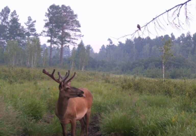 Амурский изюбрь и птичка вместе попали под прицел видеокамеры
