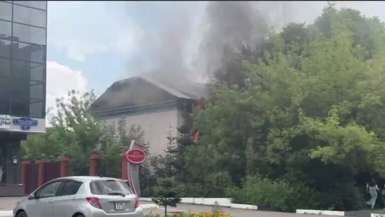 В центре Благовещенска горит двухэтажный дом (обновлено)