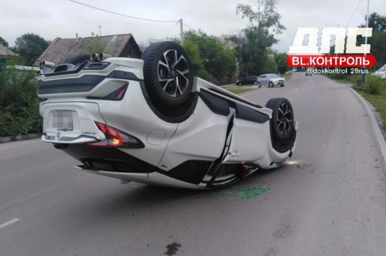 Уснула за рулём: в Благовещенске произошло ДТП с переворотом (обновлено)