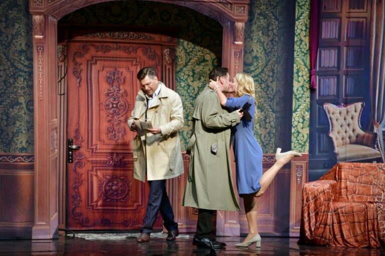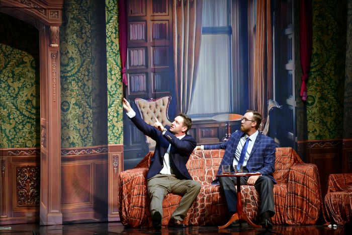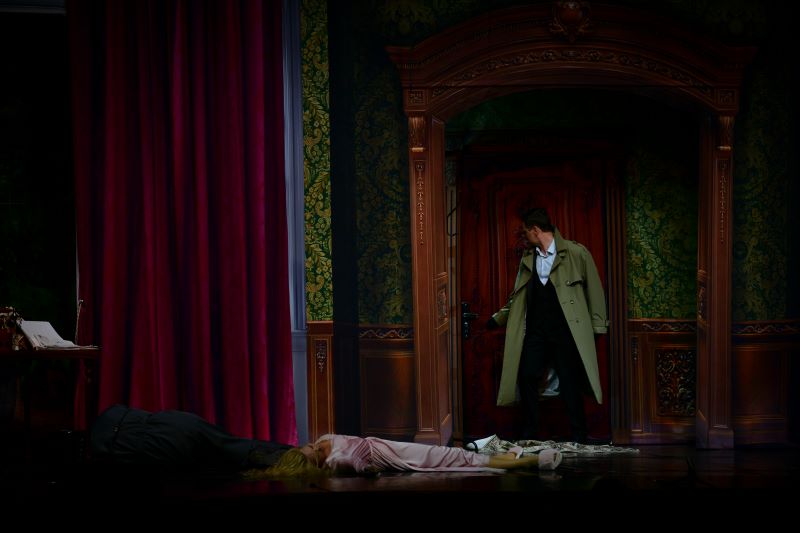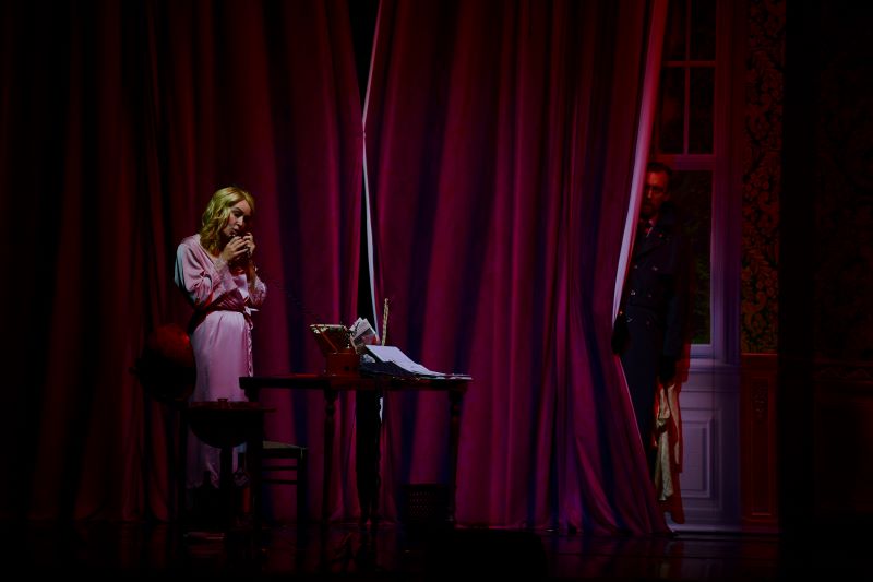 События разворачиваются в столице Англии. На сцене двое: он – сценарист, автор детективных историй и убийца 52 книжных персонажей, и она – богатая наследница и супруга другого мужчины, который вот-вот вернётся домой. Из диалога парочки следует, что год назад Оливия стала инициатором расставания с Гарри. И так расстроилась, что пришла домой и … уснула. В этот момент зал разразился дружным хохотом, который, впрочем, звучал ещё не единожды. Как правило, в каждой постановке есть актер, который отыгрывает ярче остальных, но здесь, как ни странно, каждому из пяти персонажей веришь, хотя их поведение во многом выглядело гротескно. В истории переплелись, казалось бы, несочетаемые жанры: комедия, драма и детектив, но этот симбиоз не давал оторвать взгляда от сцены.