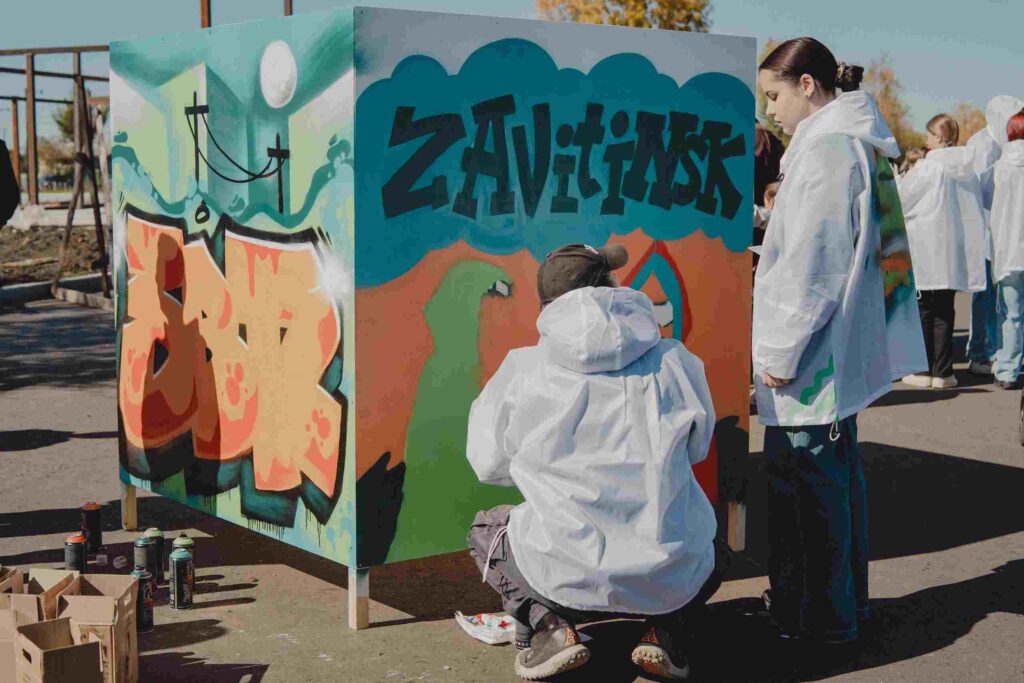 Большую часть фестиваля посвятили художественному творчеству. Молодые художники нанесли граффити на деревянные кубы, которые теперь станут достопримечательностью Завитинска. Новый арт-объект выполнен в стиле уличной культуры.