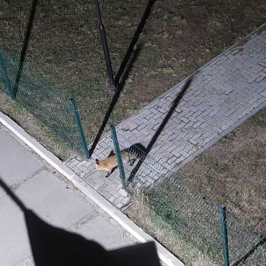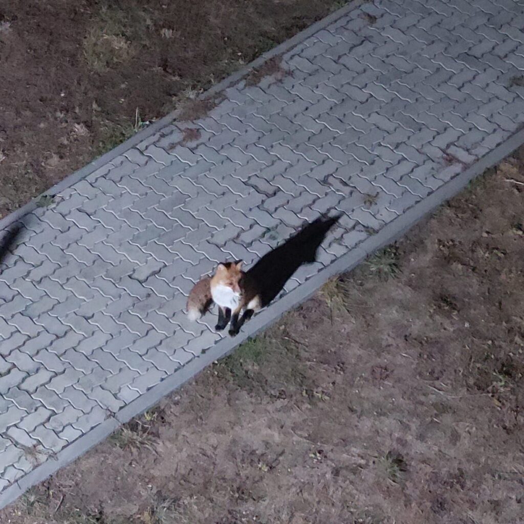 Судя по времени публикации, лиса пробралась в населенный пункт около полуночи. Заметив, что еë снимают, рыжая красотка отошла к дорожке и стала позировать лёжа, поджав под себя пушистый хвост.