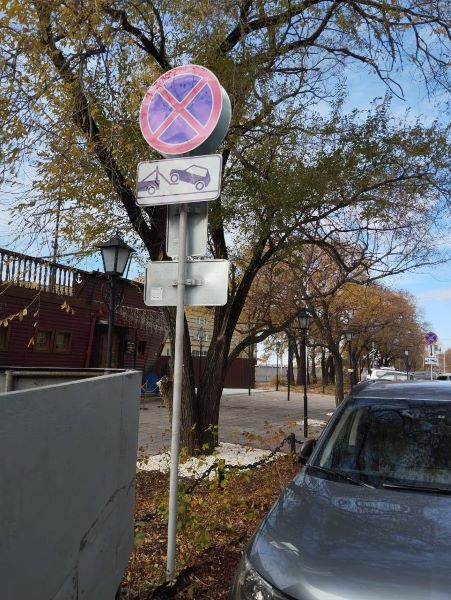 Администрация Благовещенска информирует водителей о том, что возле пассажирского порта установили новые дорожные знаки, которые ограничили остановку и стоянку автомобилей.