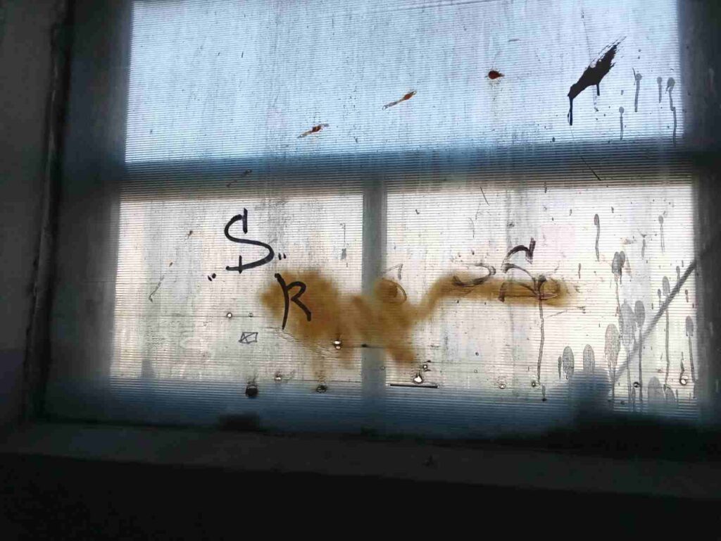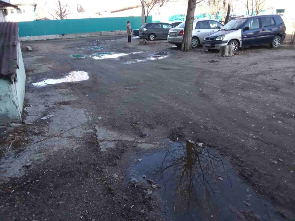 — В нашем и других подъездах стены окрашены не краской, а водоэмульсионкой. Это ужасно, должны красить краской. Ещё нет года, а стены ужасные – их даже не помыть. Как красили, вся грязь на полу. Уже вот зима скоро, а окна разбитые, вообще нет рамы. Провода висят. Двор в ужасном состоянии, дорога во дворе ужасная, дожди проходят и стоят лужи. Когда сухо, дорога с камнями – больно ходить. Крыша течет, с крыши падают камни, – перечисляет Алексей.