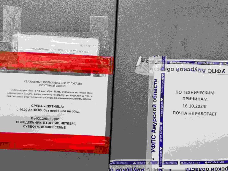 — Это филиал почты по адресу: улица Амурская, 102, который и так работает два раза в неделю. Но и в рабочий день они не работают…, – написал в редакцию о проблеме благовещенец.