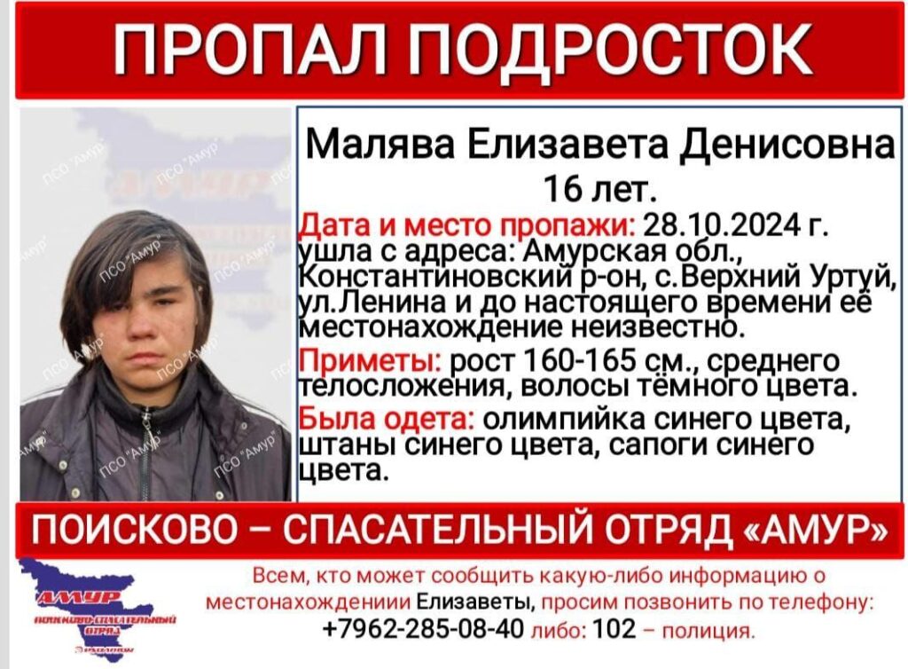 Елизавета пропала 28 октября. Девушка ушла с улицы Ленина села Верхний Уртуй Константиновского района. Её рост – 160-165 сантиметров. У подростка среднее телосложение и волосы темного цвета. В день пропажи на ней были синие штаны, олимпийка и сапоги.