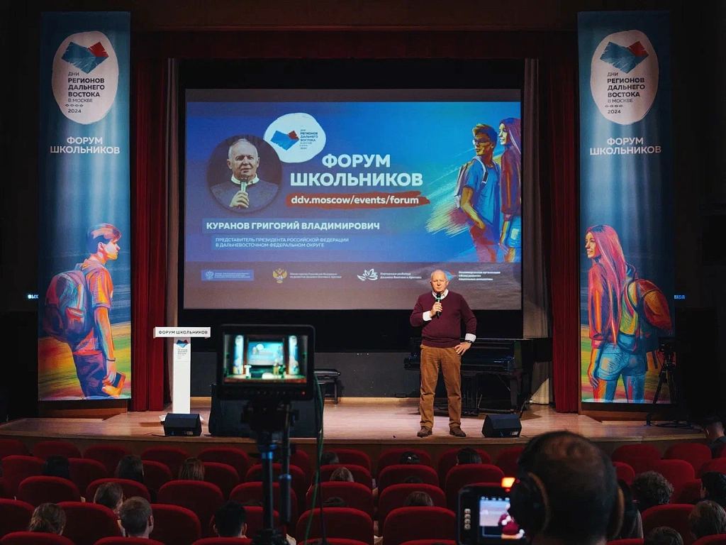 В Москве в рамках фестиваля «Дни регионов Дальнего Востока в Москве – 2024» (6+) продолжается Форум школьников (6+), где учеников 10-11 классов центральных регионов России знакомят с перспективами учёбы и трудоустройства в Дальневосточном федеральном округе.