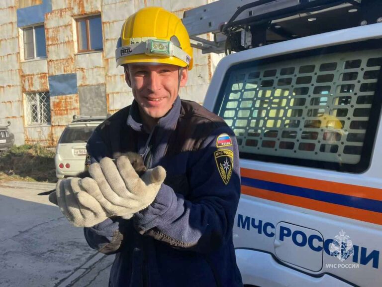 Сотрудник главного управления МЧС России по Камчатскому краю Игорь Бохан спустился в трёхметровый колодец и обнаружил котёнка, которому было около двух недель. По его словам, он не мог оставить животное в беде и решил забрать малыша себе.