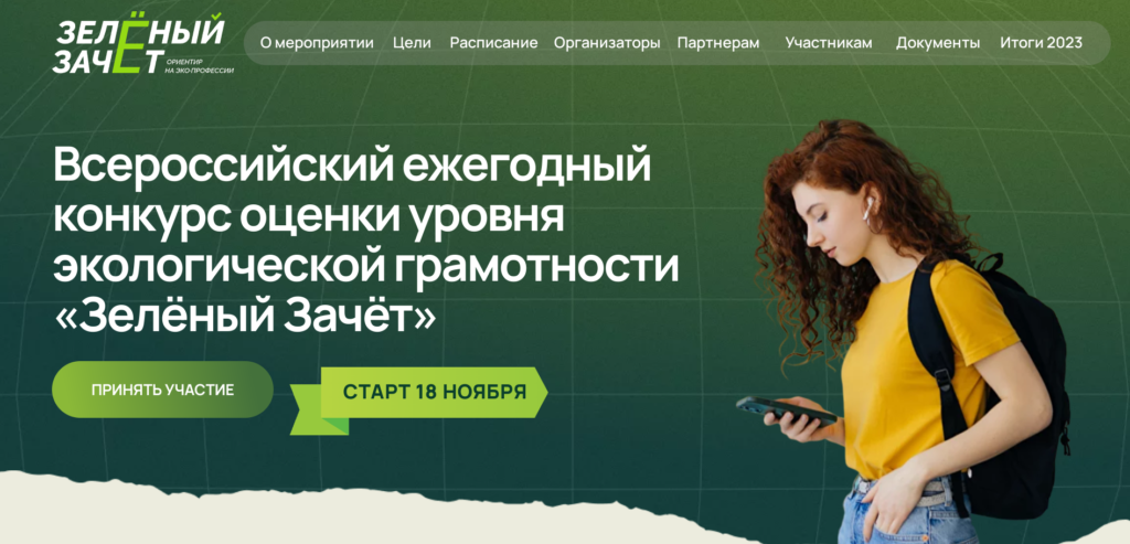 18 ноября стартовала регистрация участников Всероссийского экологического тестирования «Зеленый Зачет» от фонда «Компас». Принять участие в нем могут студенты 1-2 курсов и школьники 8–11 классов.