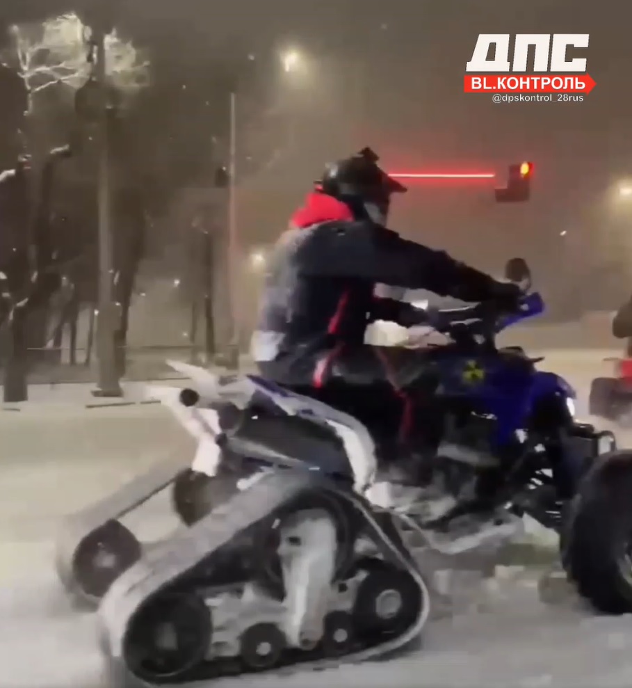 Однако не всем амурчанам снегопад доставил неудобства и испортил настроение. На улицах областного центра заметили лихих ребят в мотоэкипировке, устроивших заезд на квадроциклах. При этом некоторые водители оснастили свою технику гусеницами для удобства катания по снегу. Кадрами зимних «покатушек» поделились в паблике dpskontrol_28rus.