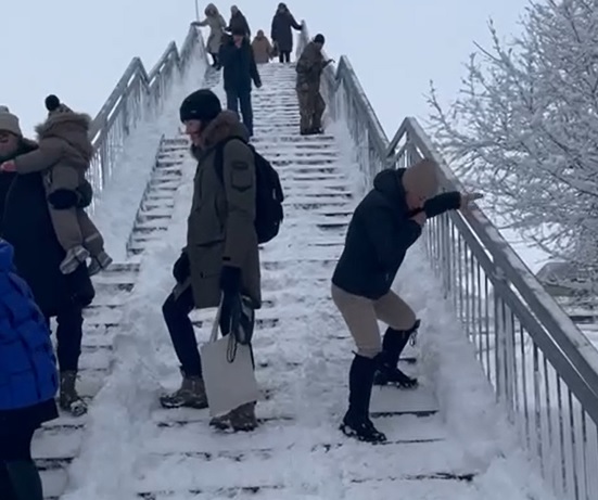 В поселке Серышево утром 27 ноября текущего года тоже было неспокойно. В час пик люди вынуждены были буквально штурмовать виадук с риском для жизни и здоровья, чтобы попасть на работу или отвести детей в садик. На кадрах видео, присланных в редакцию Амур.инфо, заметно, как жители поселка пытаются двигаться по занесенной снегом лестнице, покрепче хватаясь за перила.