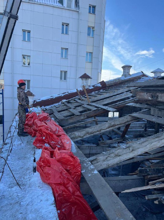 Сейчас в здании по улице Амурской, 162 ведётся демонтаж кровли и стропильной системы, подрядчик расчищает чердачные помещения. До конца декабря строители должны подготовить к ремонту второй этаж: полностью демонтировать чердачные перекрытия, перегородки, снять старое покрытие.