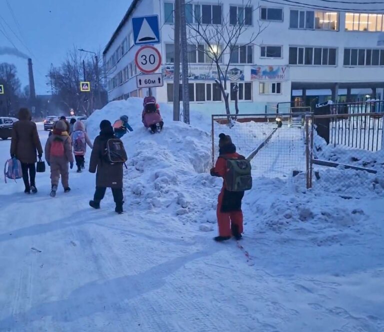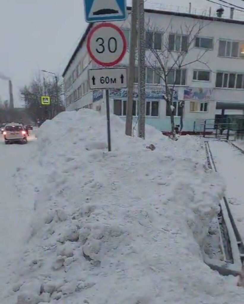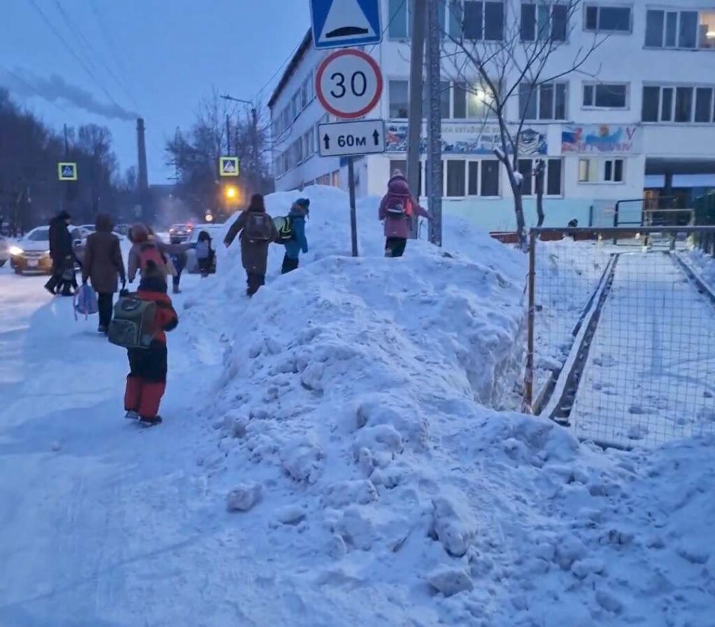 — Ситуация возле школы. Нагребли снега, детям с одной стороны можно пройти либо по дороге, где машины ездят, либо забираться вот на эту горку. Как первоклашки здесь проходят, я не знаю, – сокрушается горожанин.