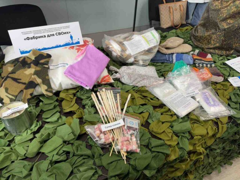 Участники представили экспонаты, выполненные руками благовещенцев для бойцов СВО. Среди них были окопные свечи, маскировочные сети, сухой душ, нашлемники, браслеты выживания, белье для госпиталей, дронов и другие необходимые в полевых условиях вещи. Но были и греющие души военных небольшие игрушки и сувениры.