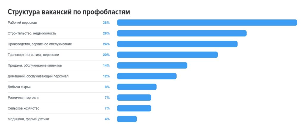На самом деле спрос на многих сотрудников серьезно вырос по сравнению с прошлым годом. Например, в ноябре текущего года работодатели на 130 % (!) чаще ищут медработников и фармацевтов, чем в тот же период в 2023 году. В тот же сравнительный период возрос спрос на специалистов по информационным технологиям (на 74 %), сотрудников туристической сферы, ресторанного и гостиничного бизнеса (на 53 %). На 35 % востребованнее стали работники автобизнеса, на 31 % – деятели искусства, сотрудники сферы развлечений и массмедиа. На 30 % чаще стали приглашать граждан на работу на производство, в сферы сервисного обслуживания и менеджмента.