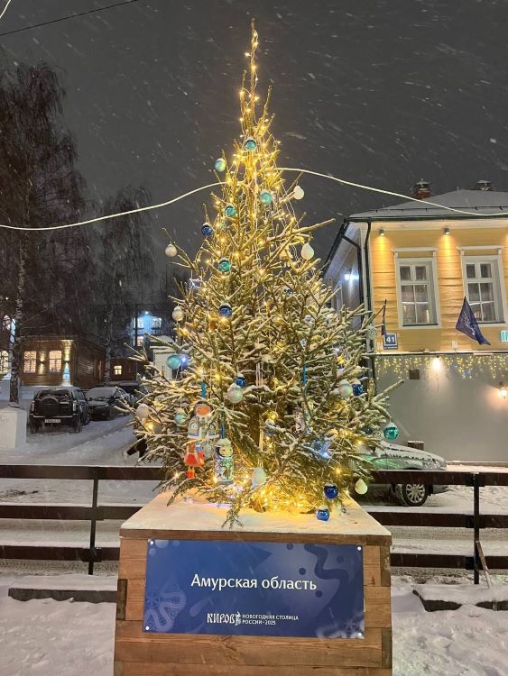 В Кирове, новогодней столице России, появилась необычная праздничная ёлка. Дерево украшено особенными игрушками, символизирующими Амурскую область. Как и почему это произошло, рассказали в Амурском областном Доме народного творчества.