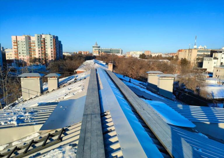 Когда птицы покинули крышу, начался ремонт. Там заменили покрытие, элементы стропильной системы, утеплили чердачное перекрытие.