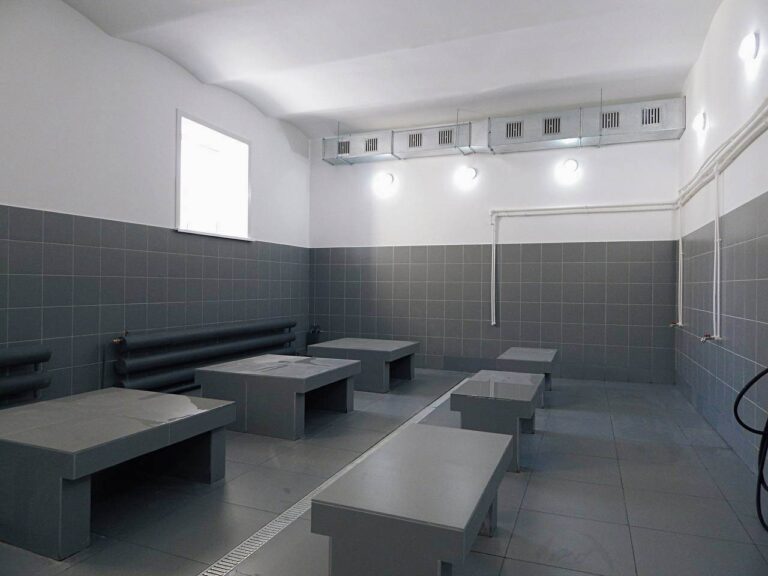 В старом здании бани провели полную реконструкцию: обновили кровлю, заменили систему вентиляции и электропроводку, установили новые котлы, окна и двери. Также к зданию сделали пристройку, что увеличило площадь помывочной.