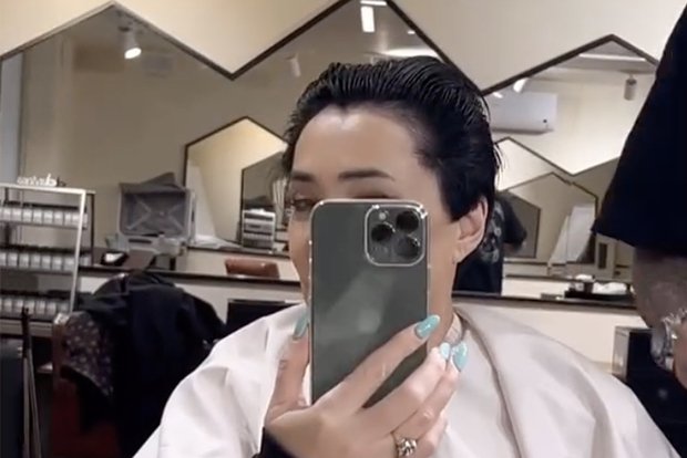Позже знаменитость разместила сторис, где продемонстрировала результат преображения. Так, она позировала на камеру с уложенными назад короткими темными волосами. Фанаты сразу заметили пропажу чёлки артистки.