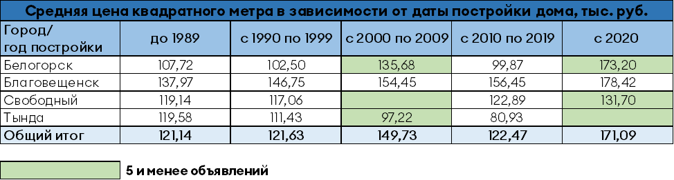В выборку попали четыре крупных города Амурской области: Благовещенск, Белогорск, Свободный и Тында. Из выборки исключены частные дома «на земле», а также «гостинки» и квартиры, расположенные в близлежащих поселениях (хотя при просмотре на сайтах объявлений они могут попасть в выборку).