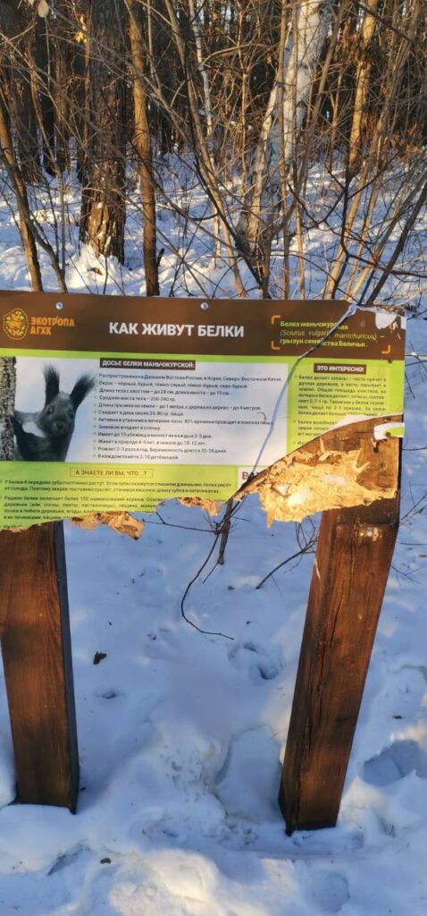 — Круглогодичная экологическая тропа пользуется очень большой популярностью у жителей и гостей Свободного. Здесь довольно активный траффик, особенно в выходные и праздничные дни. К сожалению, факты разрушения объектов на экотропе фиксируются периодически. Со своей стороны, мы помогаем восстанавливать объекты или меняем их на новые, – сообщили в Амурском ГХК.